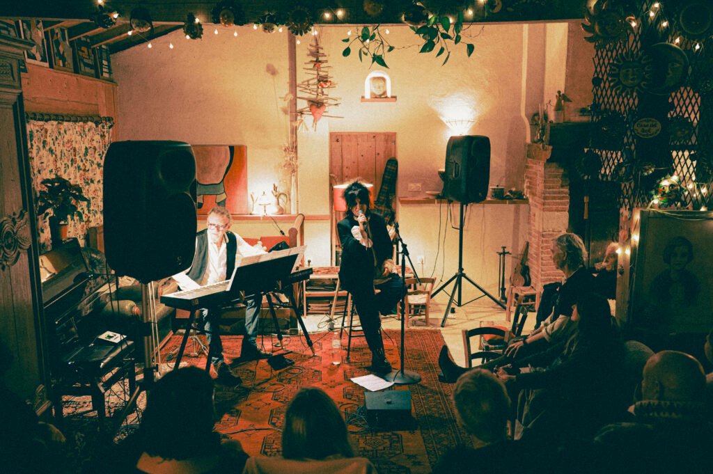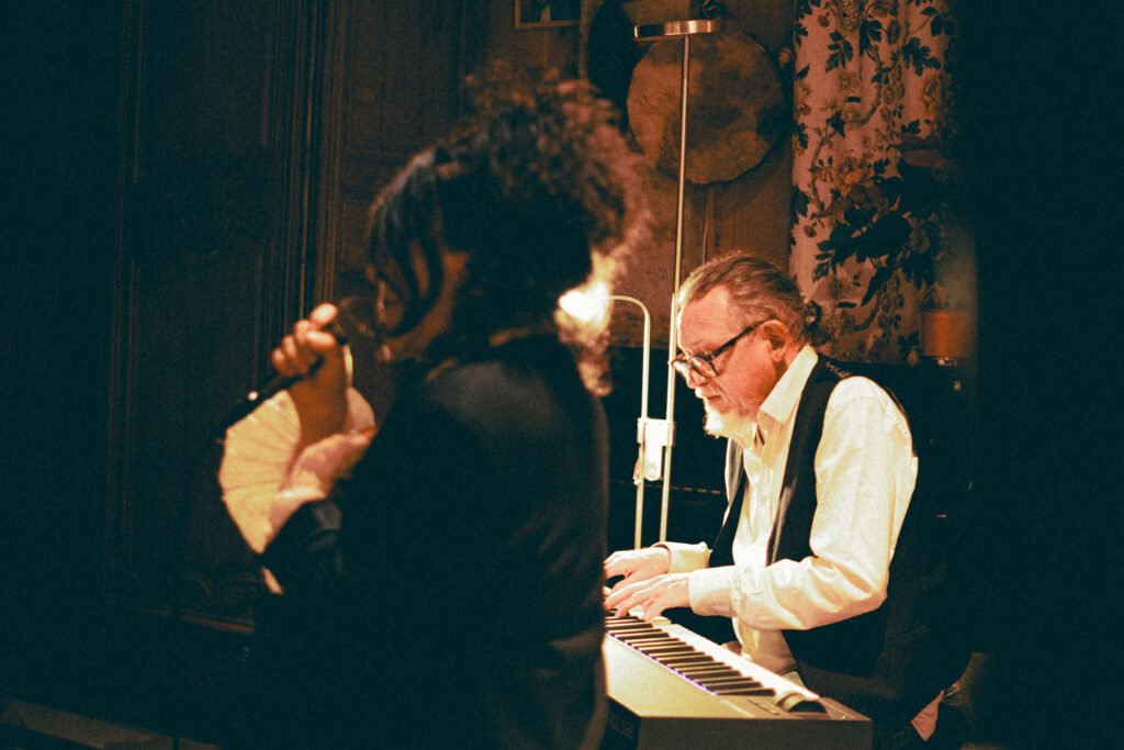 La création sonore est assurée en direct par Paco, ingénieur du son, dont la présence discrète et attentive accompagne le duo et participe pleinement à la finesse et à l’équilibre du moment.